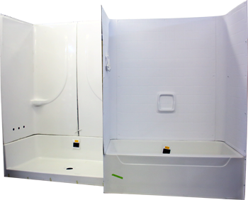 We also have the vinyl, one piece wall surrounds for all of our one piece tubs.